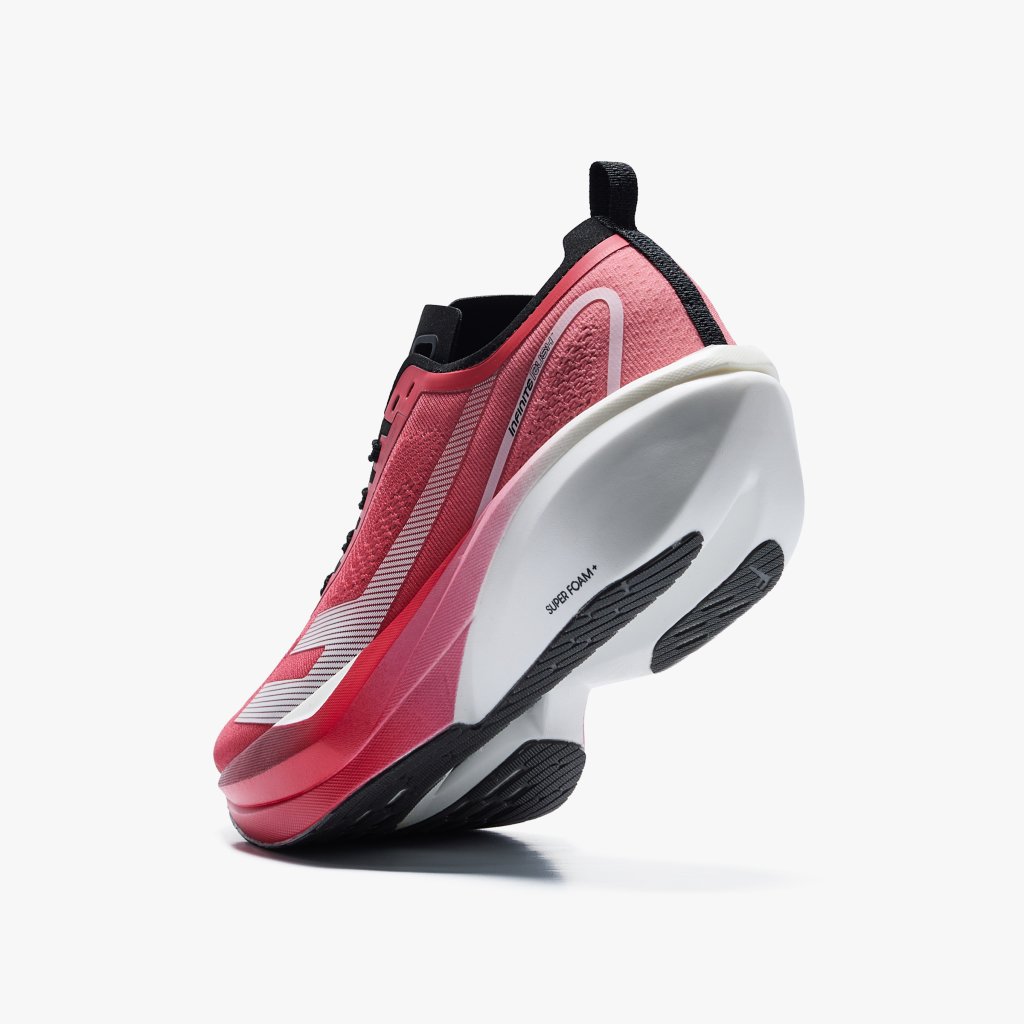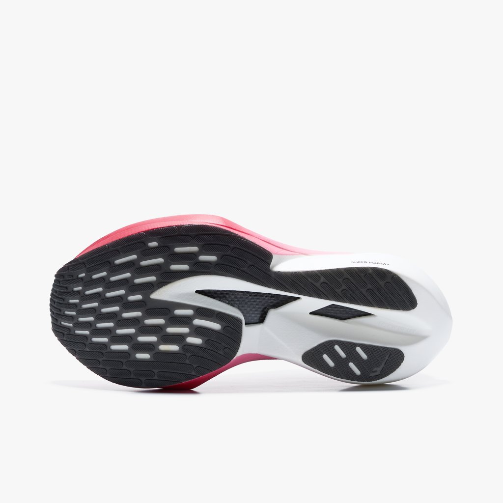 에너지 손실을 최소화할 수 있는 PEBA 폼을 미드솔에 사용했습니다. 하이퍼 러시보다 30% 넓어진 카본 플레이트가 추진력을 끌어올리며, 전·중족부를 넓게 설계한 바텀 구조는 고속 주행에서도 흔들림 없는 안정감을 유지할 수 있게 합니다. 러닝 동작을 반영한 토 스프링이 착지부터 발끝 이탈까지 전환을 자연스럽게 이어 주고, 탄성이 뛰어난 슈퍼폼 인솔과 풀림 걱정 없는 레이싱 전용 신끈이 탄탄한 착화감을 완성합니다.