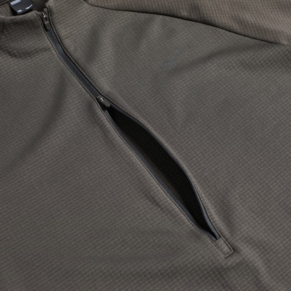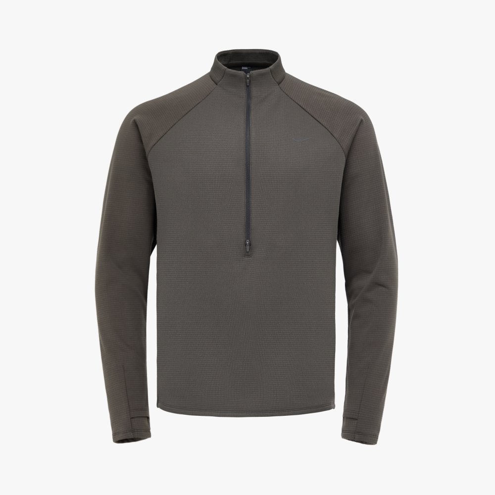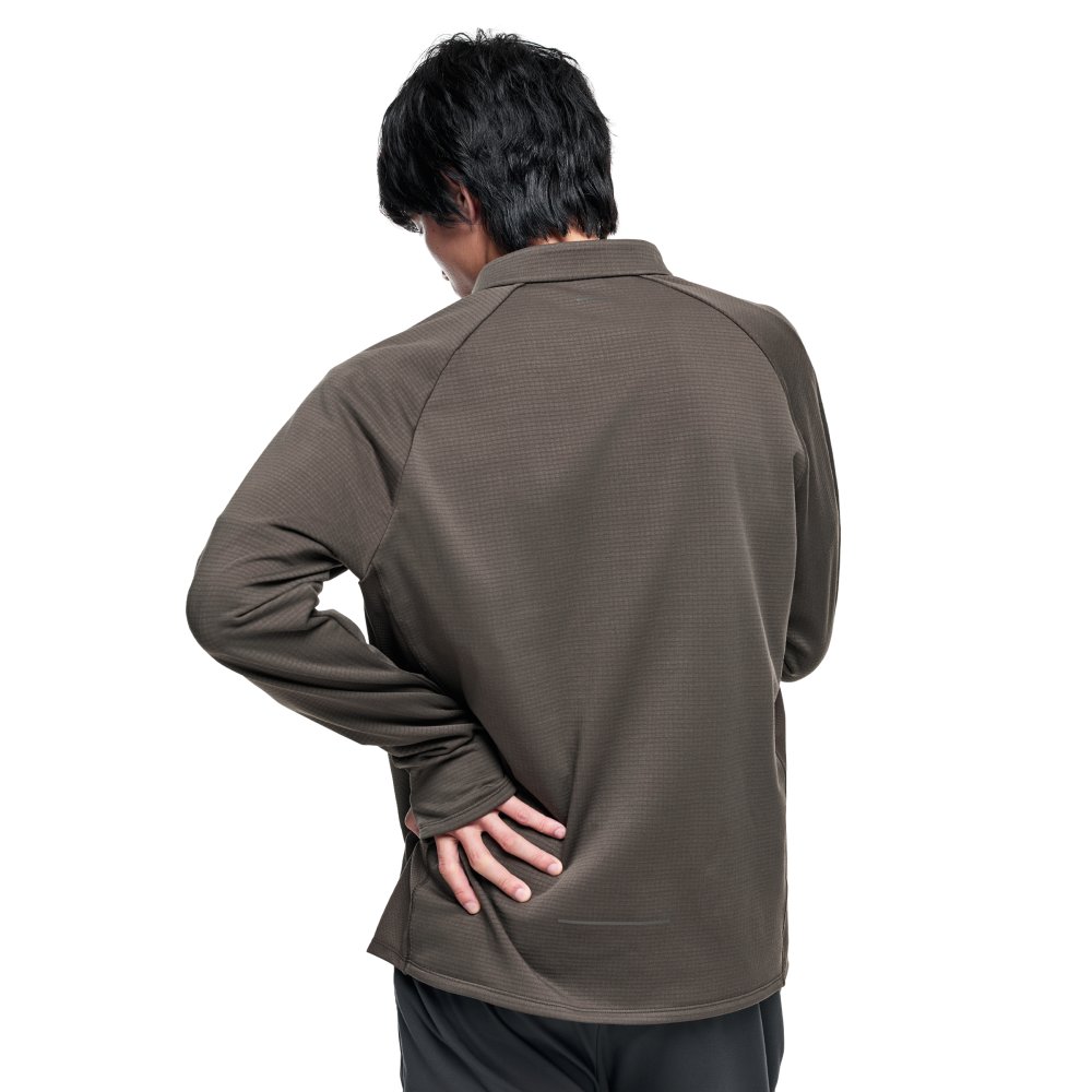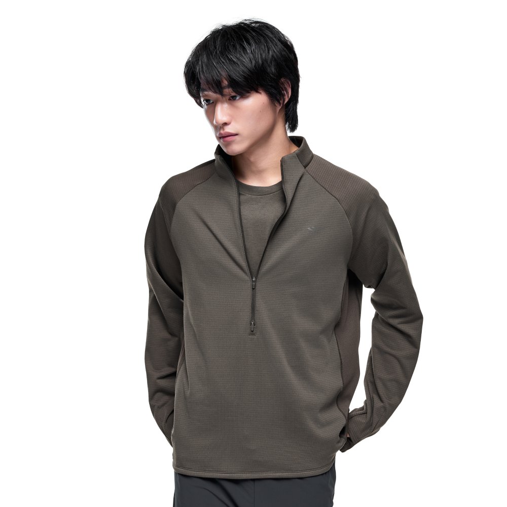 신축성과 보온성을 갖춘 동계 남성 하프 집업 티셔츠로, 엄지홀 구조와 지퍼 통풍 설계, 리플렉티브 디테일로 러닝 시 활동성과 가시성을 높인 아이템입니다.