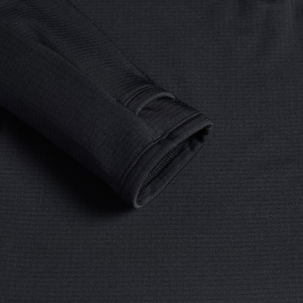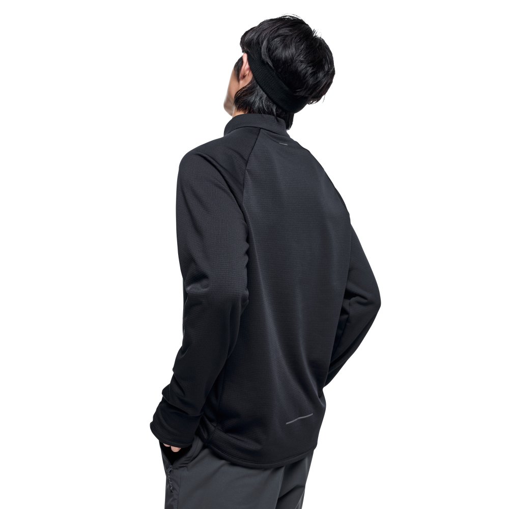 신축성과 보온성을 갖춘 동계 남성 하프 집업 티셔츠로, 엄지홀 구조와 지퍼 통풍 설계, 리플렉티브 디테일로 러닝 시 활동성과 가시성을 높인 아이템입니다.
