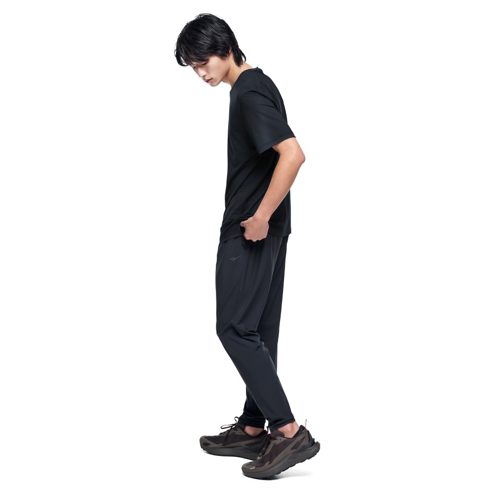 신축성 좋은 기능성 소재와 부위별 소재 배치를 적용해 활동성을 높인 간절기 러닝 팬츠로, 지퍼 포켓과 허리 스트링으로 안정적인 착용감과 실용성을 더한 아이템입니다.