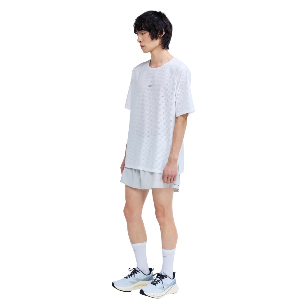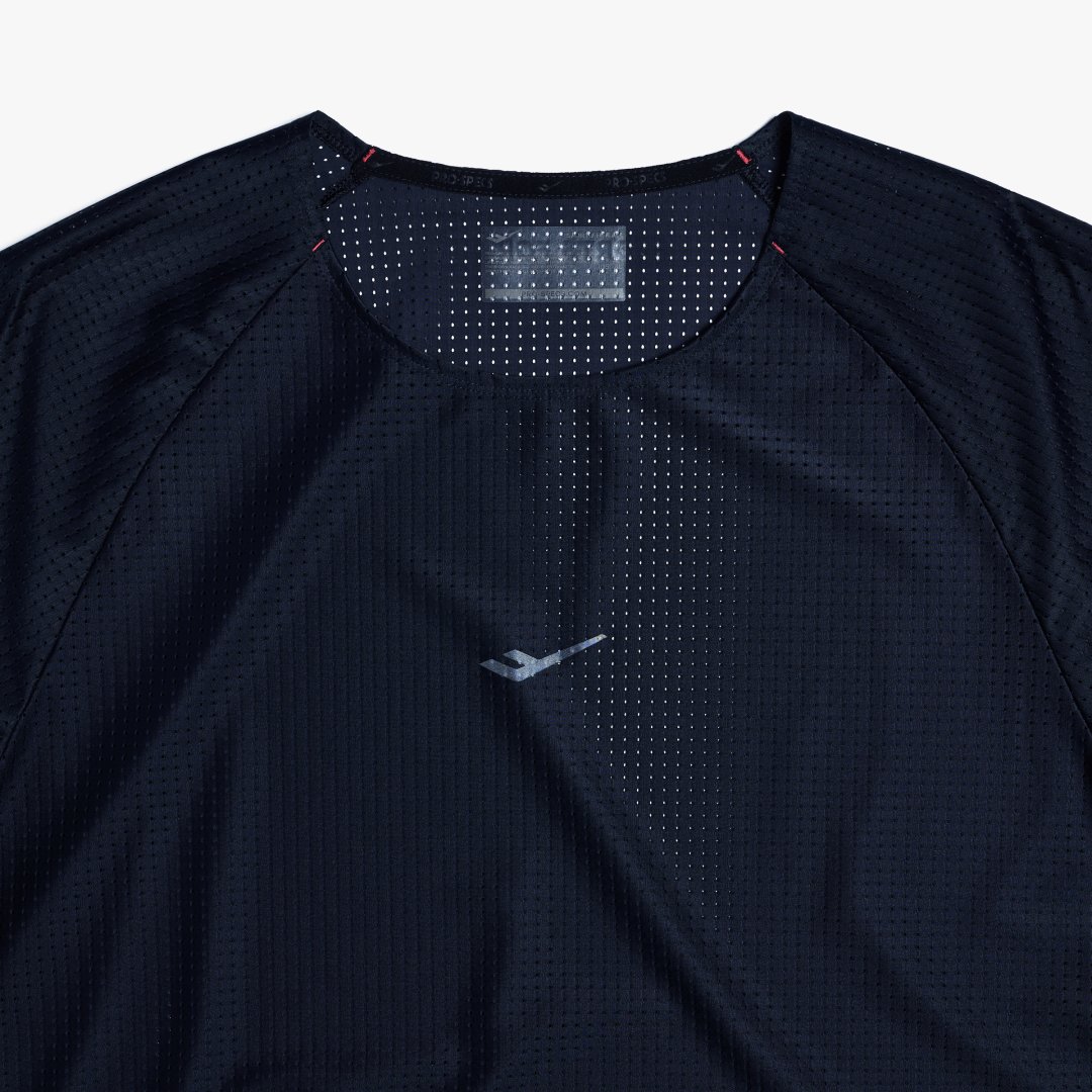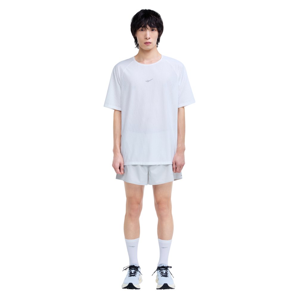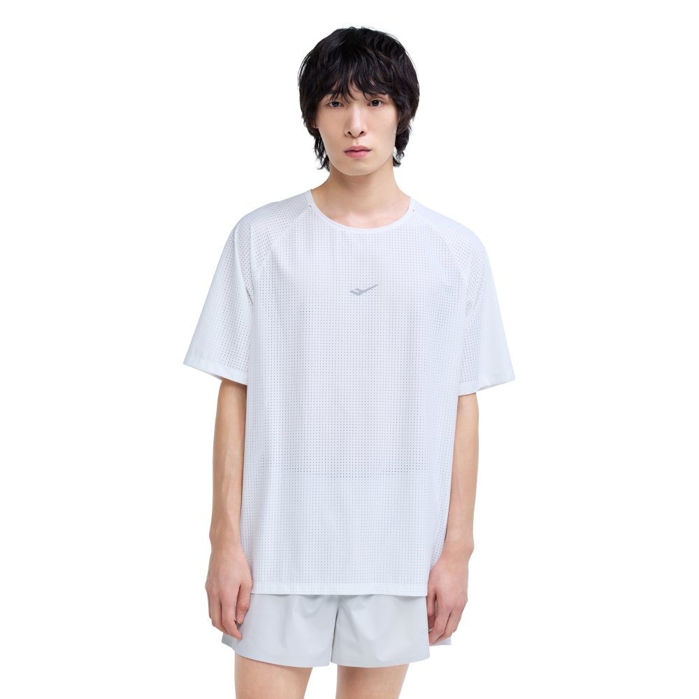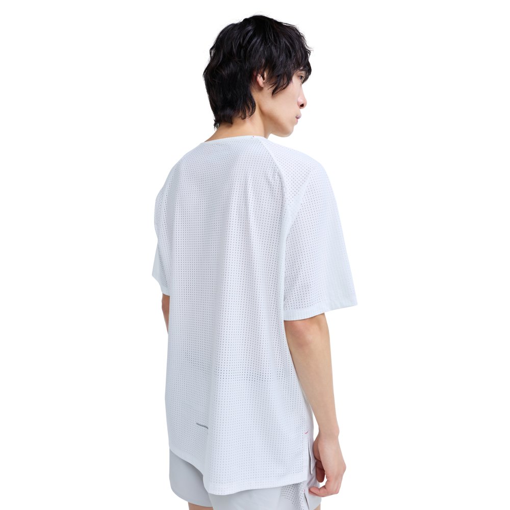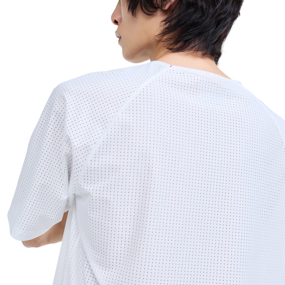 메쉬 져지 소재의 통기성과 고유의 디자인 특성을 모두 활용해 개성 있는 스타일을 완성하는 러닝 반팔 티셔츠