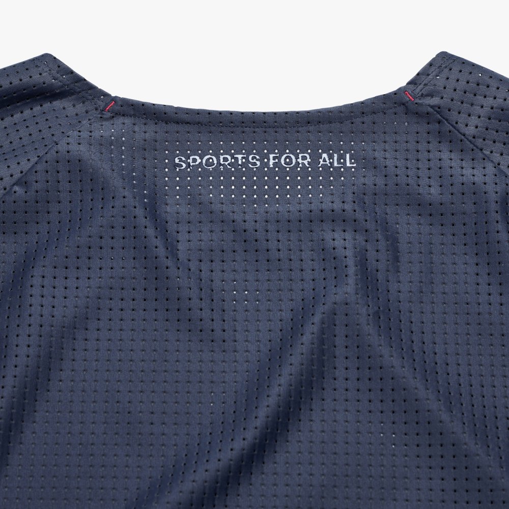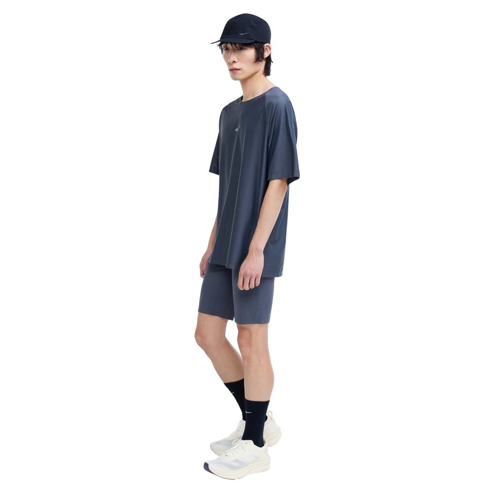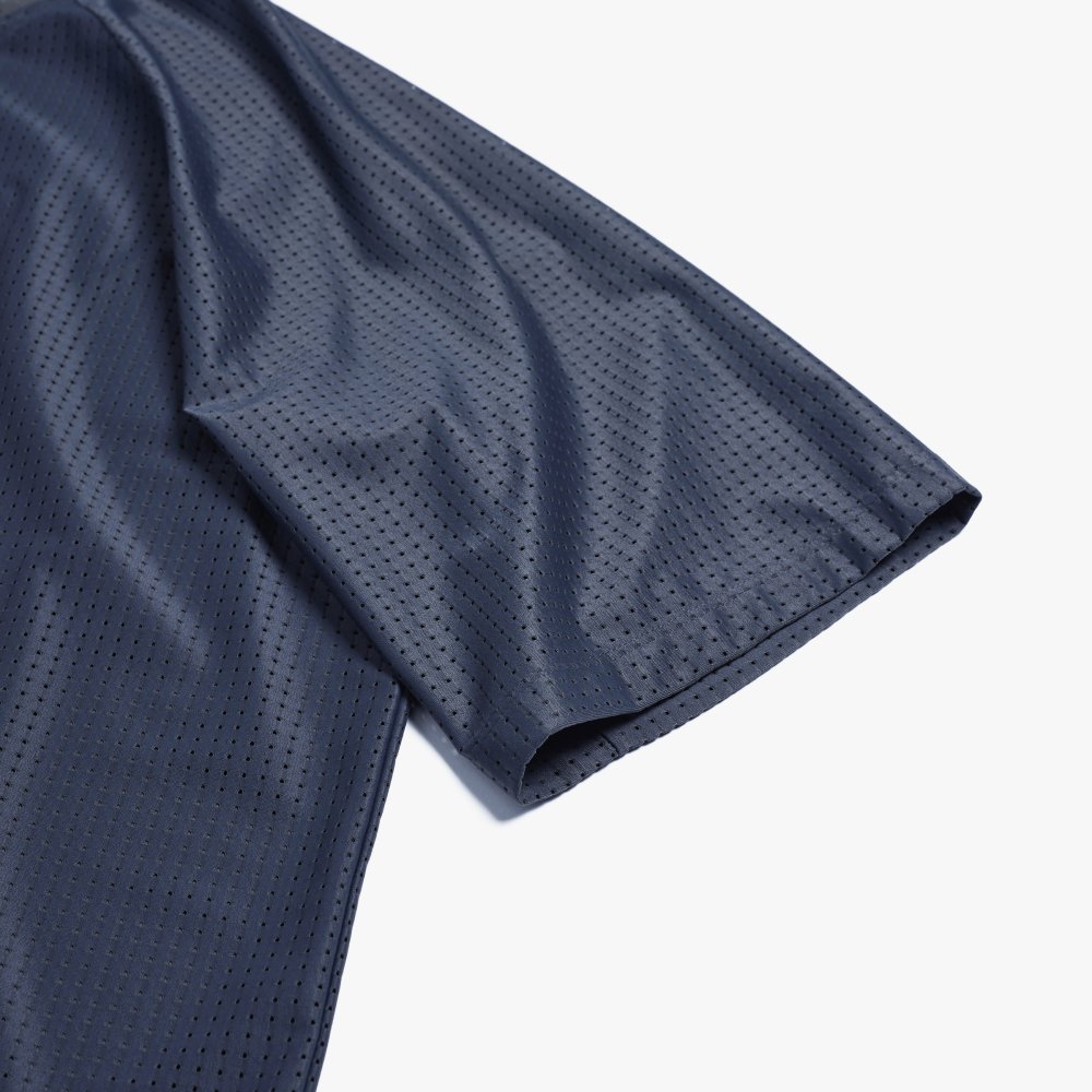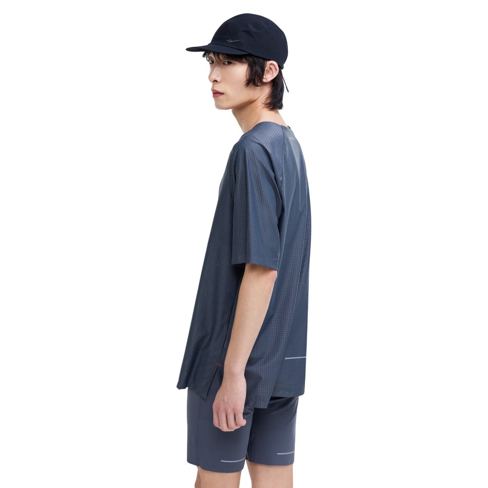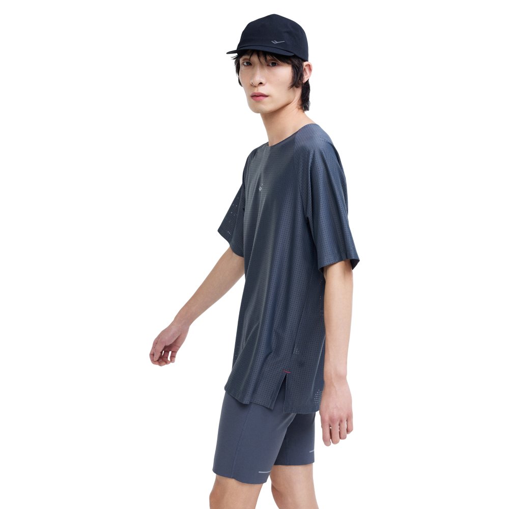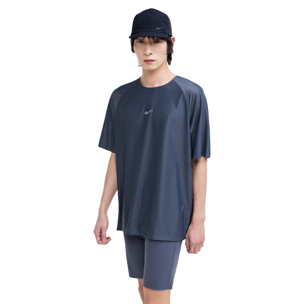 메쉬 져지 소재의 통기성과 고유의 디자인 특성을 모두 활용해 개성 있는 스타일을 완성하는 러닝 반팔 티셔츠