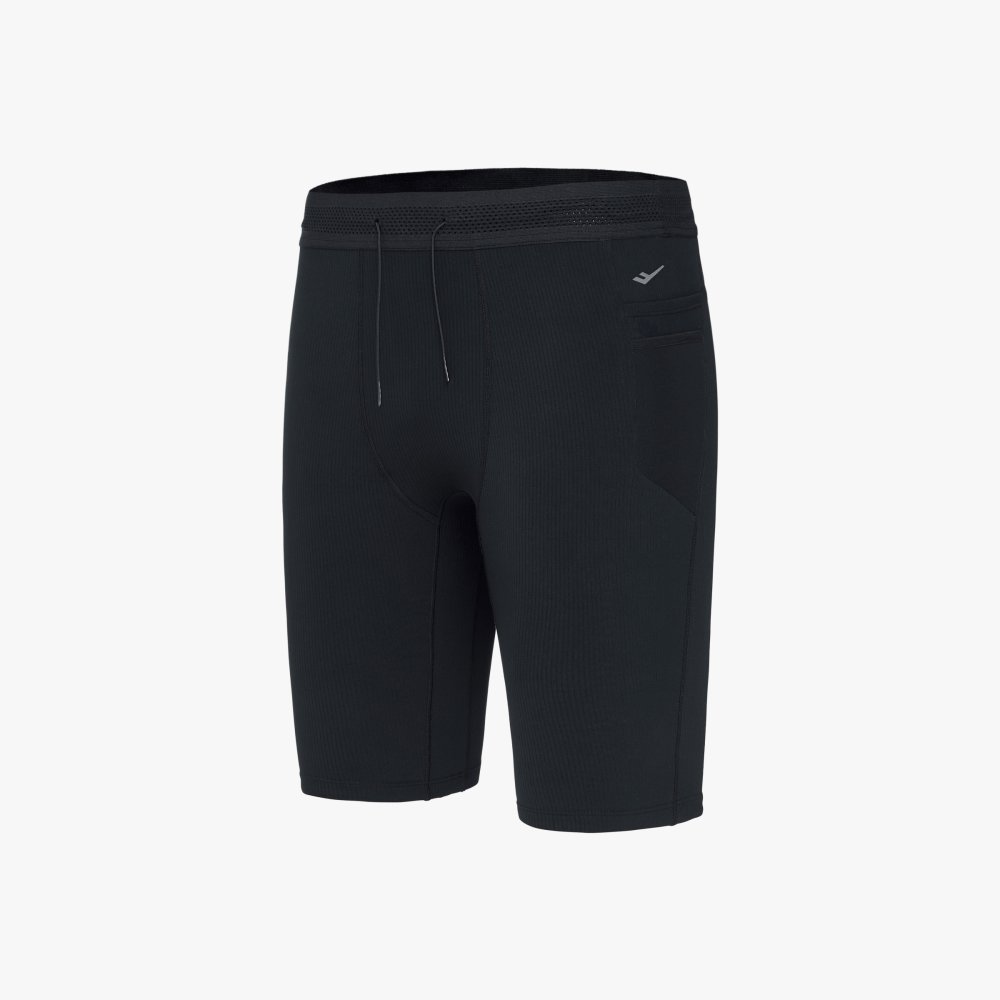 신축성 소재로 안정적인 착용감을 제공하는 남성 러닝 숏 타이츠로, 메쉬 허리 밴드와 다양한 수납 포켓, 리플렉티브 디테일로 실용성과 가시성을 높인 아이템입니다.