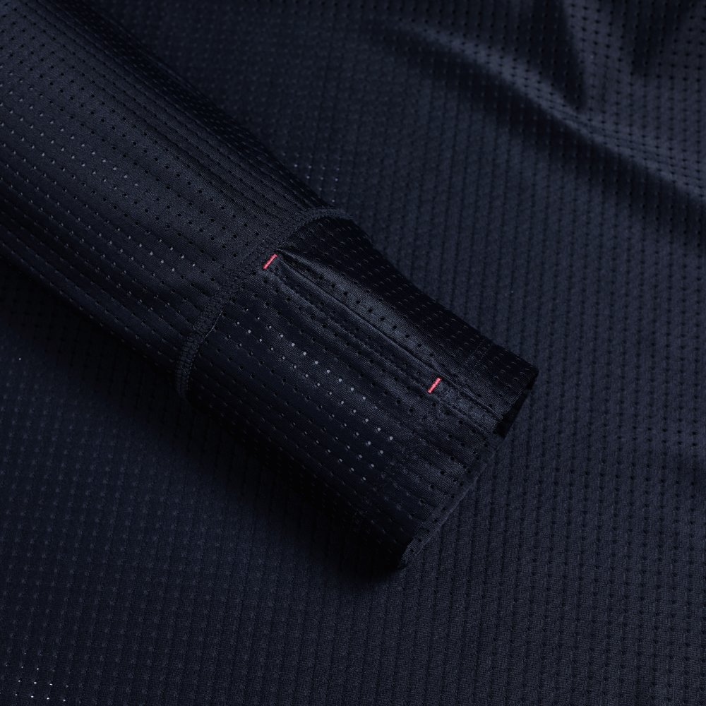 • 소매 끝 핑거 홀 디테일이 손등을 덮어 움직이는 동안에도 핏이 유지되고, 밑단 드로스트링으로 움직임에 맞게 실루엣을 정돈할 수 있습니다.