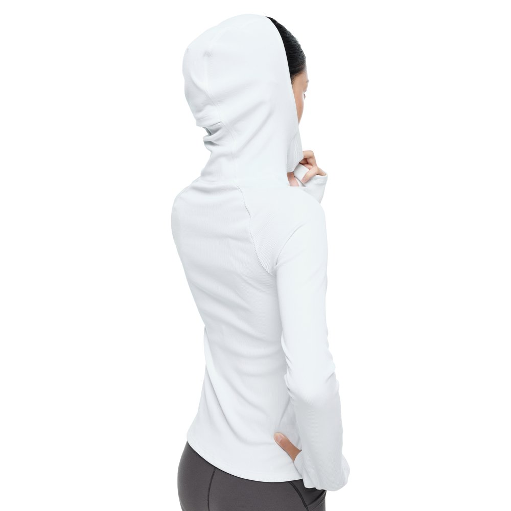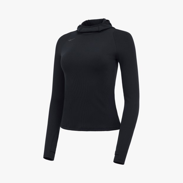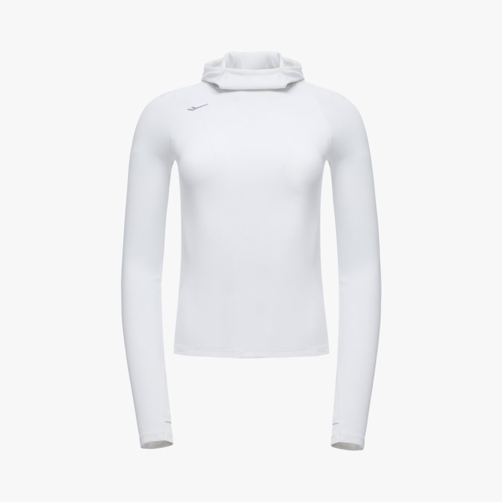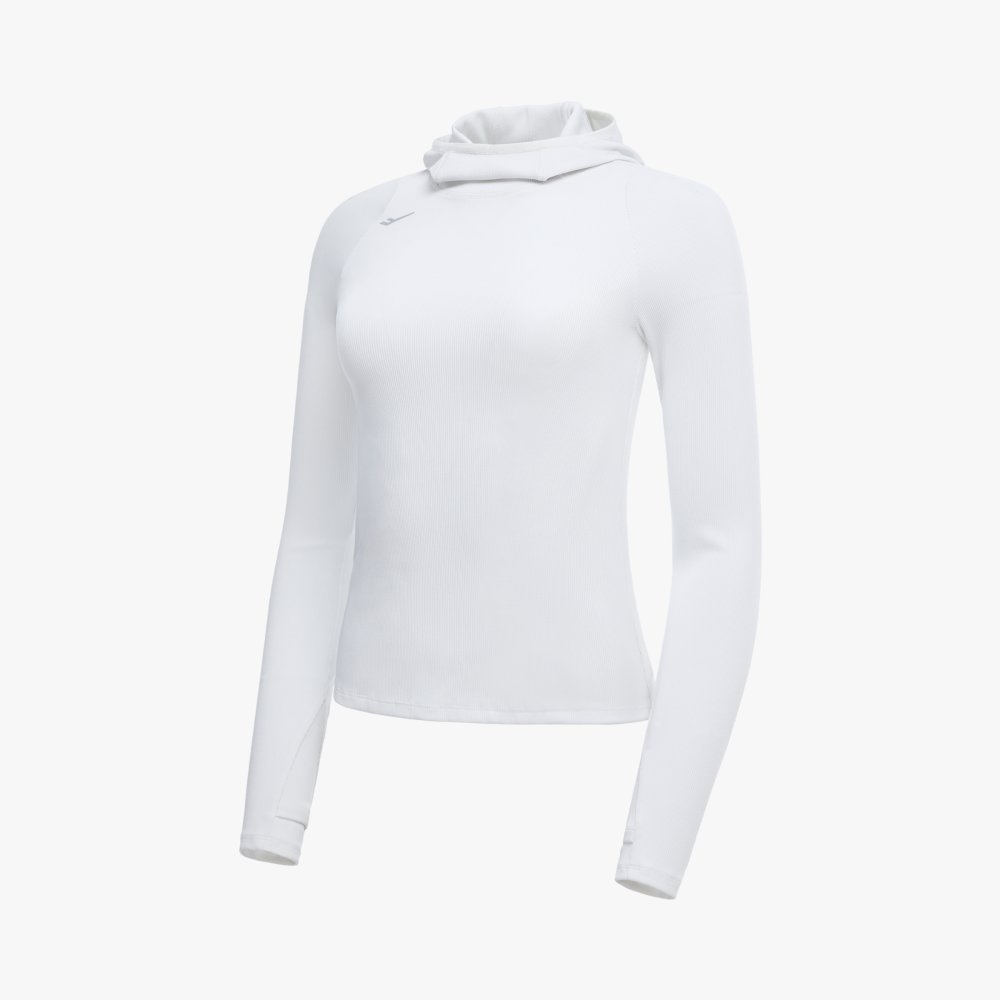 신축성 소재와 엄지홀 구조를 적용해 안정적인 착용감을 제공하는 여성용 러닝 후드 티셔츠로, 벤틸 후드 구조와 리플렉티브 디테일로 기능성과 가시성을 높인 아이템입니다.
