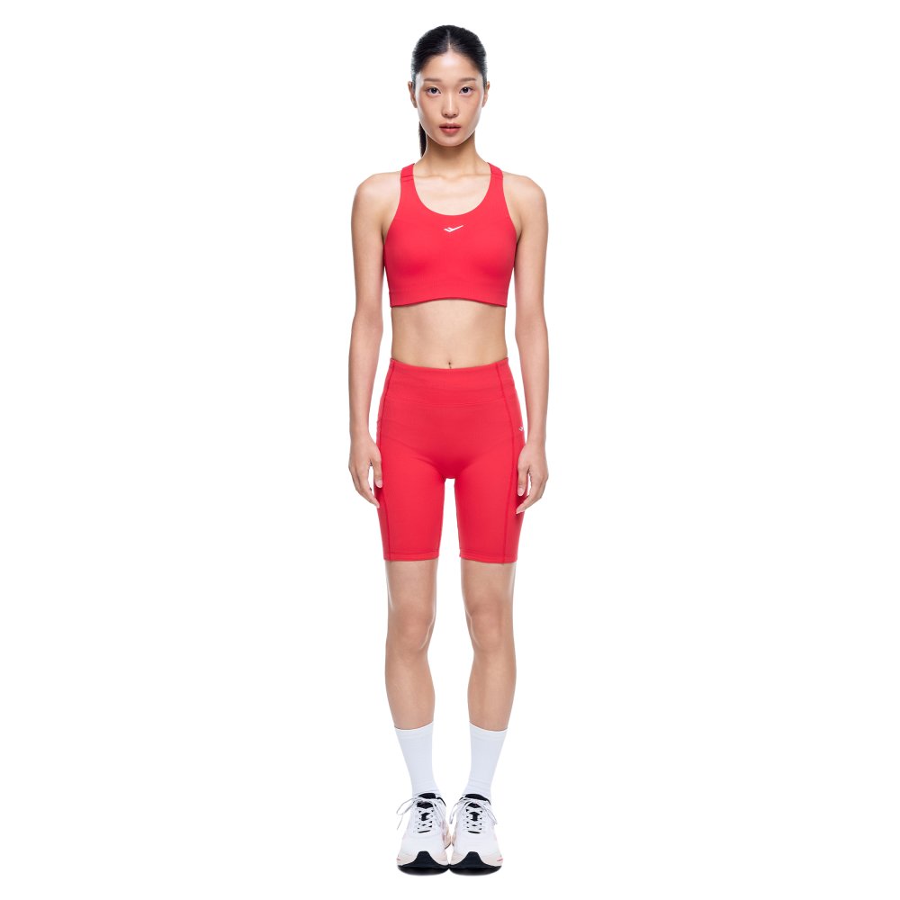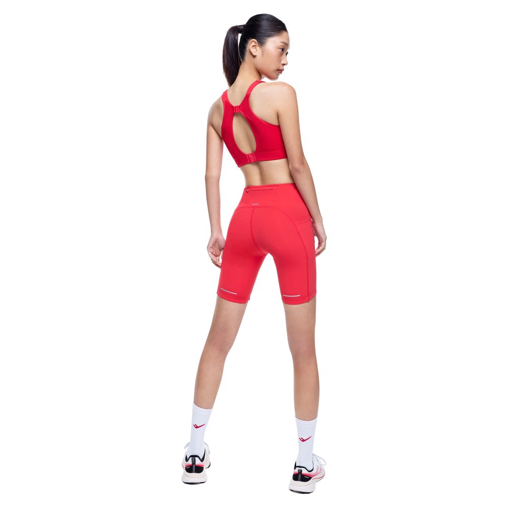 넓은 숄더 스트랩과 교차형 등판 구조로 안정적인 착용감을 제공하는 여성 러닝 브라탑으로, 사이즈 조절 장치와 리플렉티브 디테일로 핏과 가시성을 높인 아이템입니다.