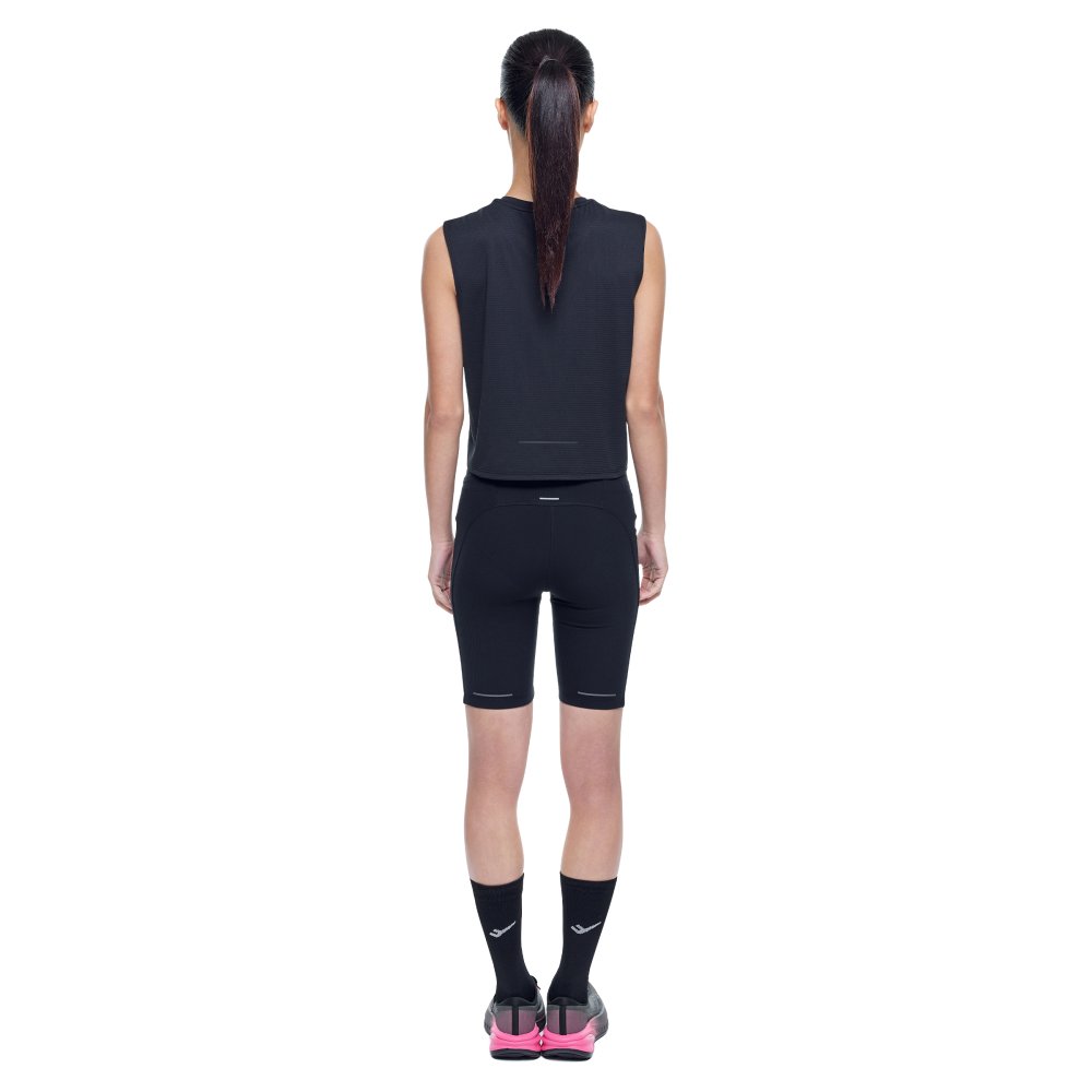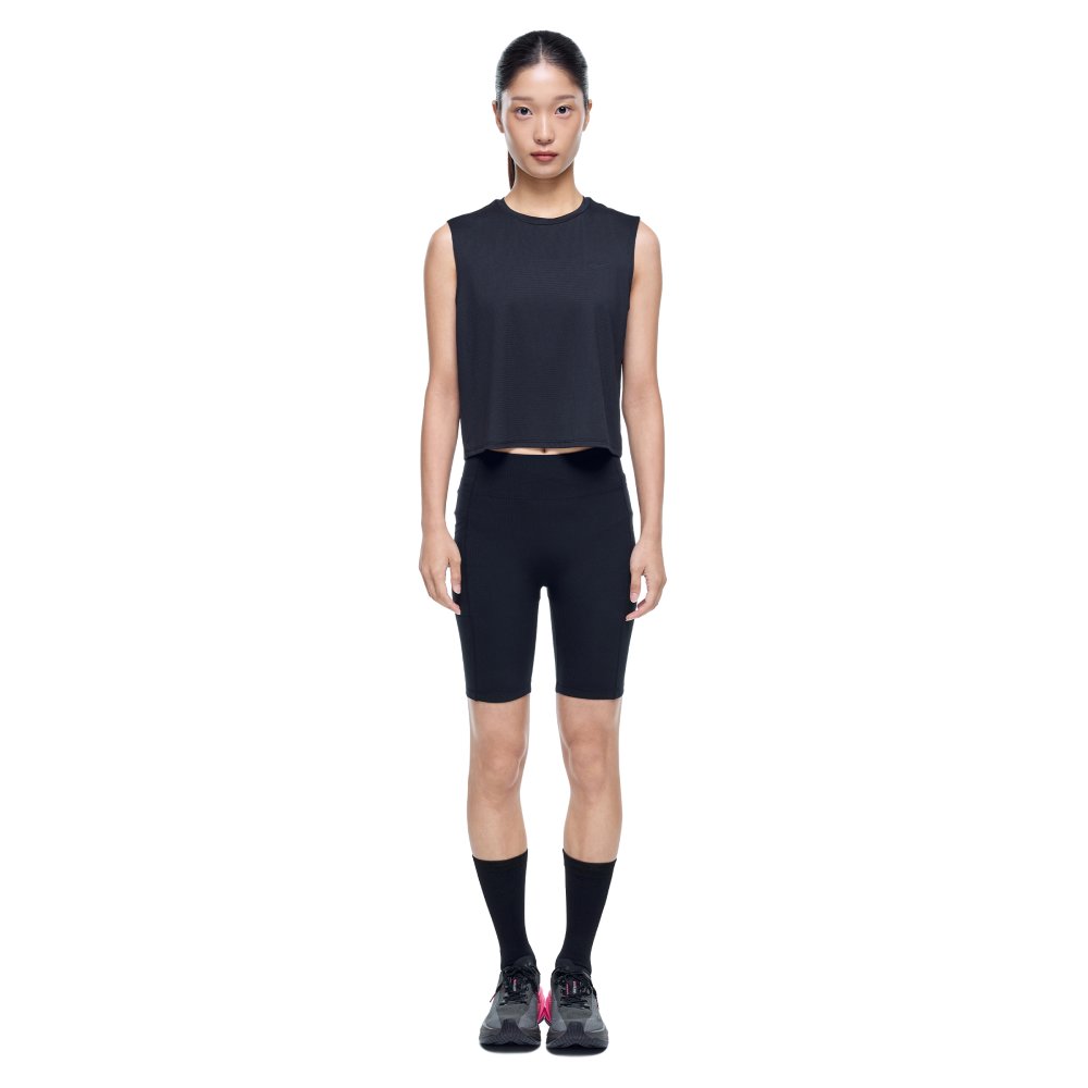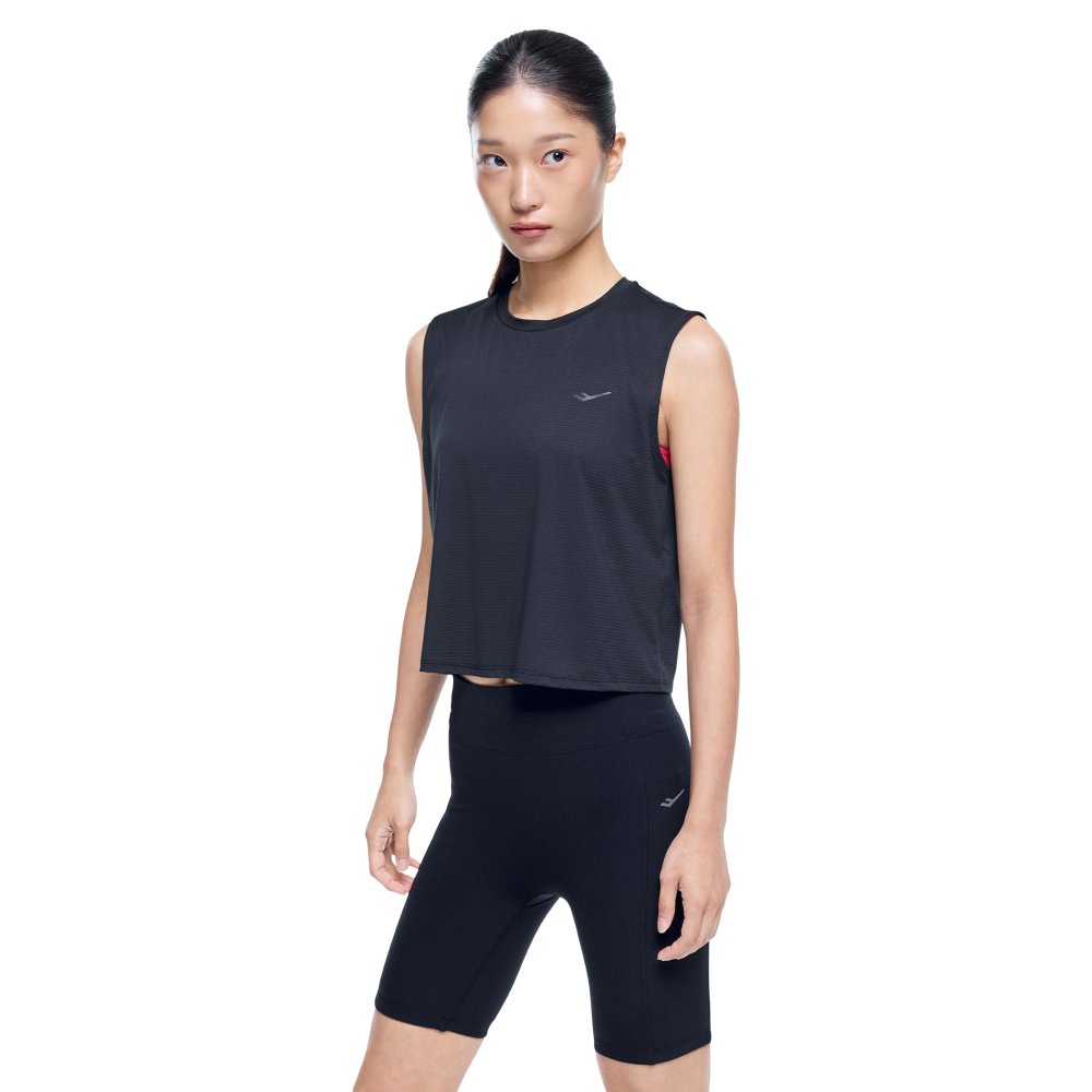 크롭 기장의 레귤러 핏으로 브라탑과 레이어드하기 좋은 여성 러닝 싱글렛으로, 리플렉티브 디테일로 가시성을 더해 운동과 일상에서 활용하기 좋은 아이템입니다.