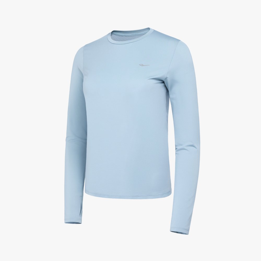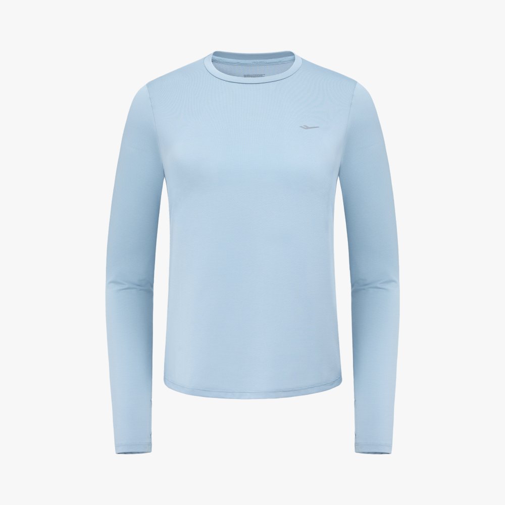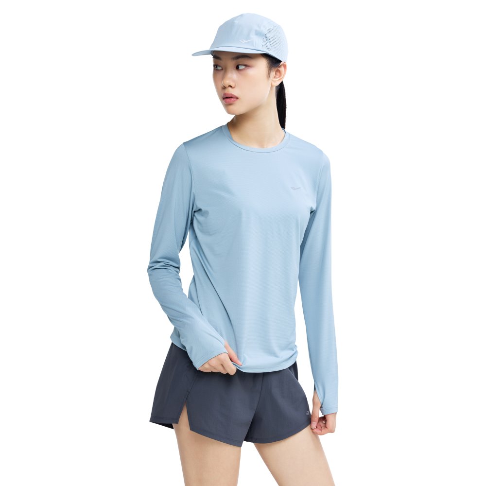 부담 없는 실루엣으로 편안하게 활동할 수 있는 긴팔 러닝 상의
