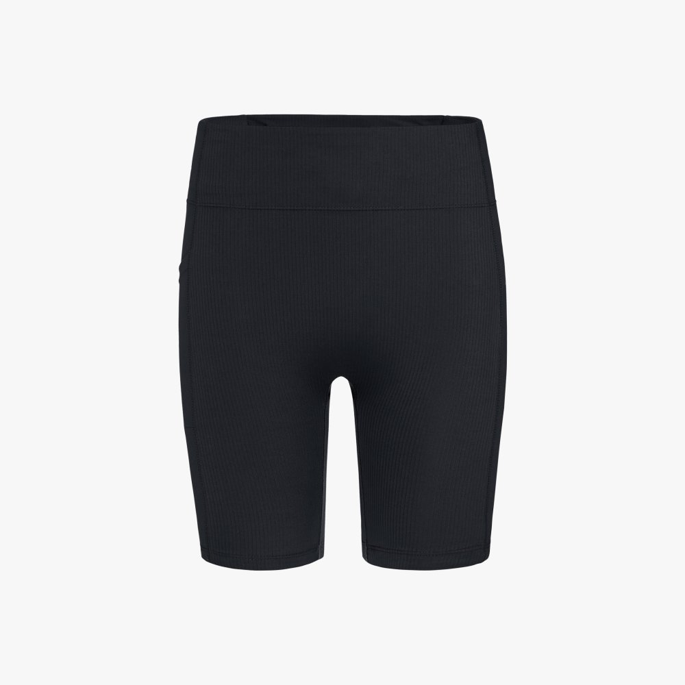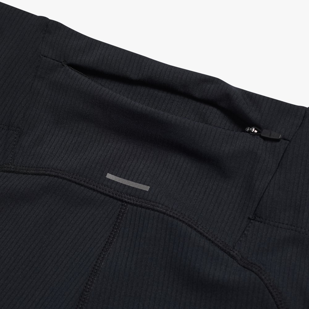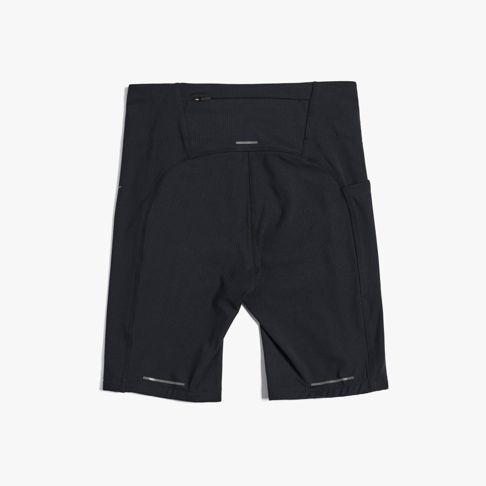신축성 소재와 하이웨이스트 구조로 안정적인 착용감을 제공하는 여성 숏 러닝 타이츠로, 수납 포켓과 리플렉티브 디테일로 실용성과 가시성을 높인 아이템입니다.