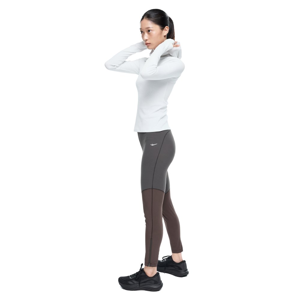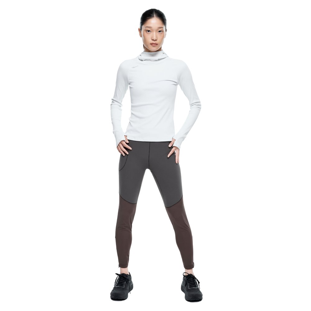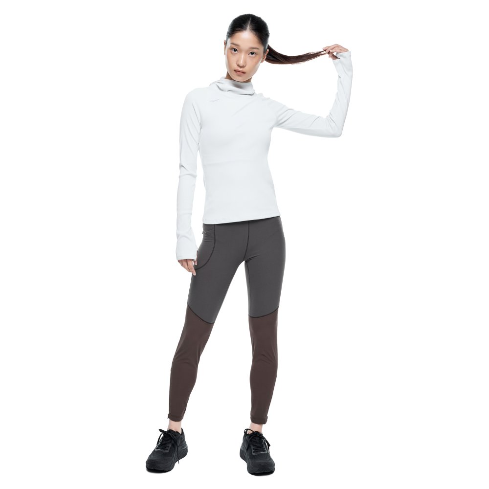 하이웨이스트 구조와 신축성 소재를 적용해 안정적인 착용감을 제공하는 여성 동계 러닝 타이츠로, 지퍼 밑단과 수납 포켓, 리플렉티브 디테일로 실용성과 가시성을 높인 아이템입니다.
