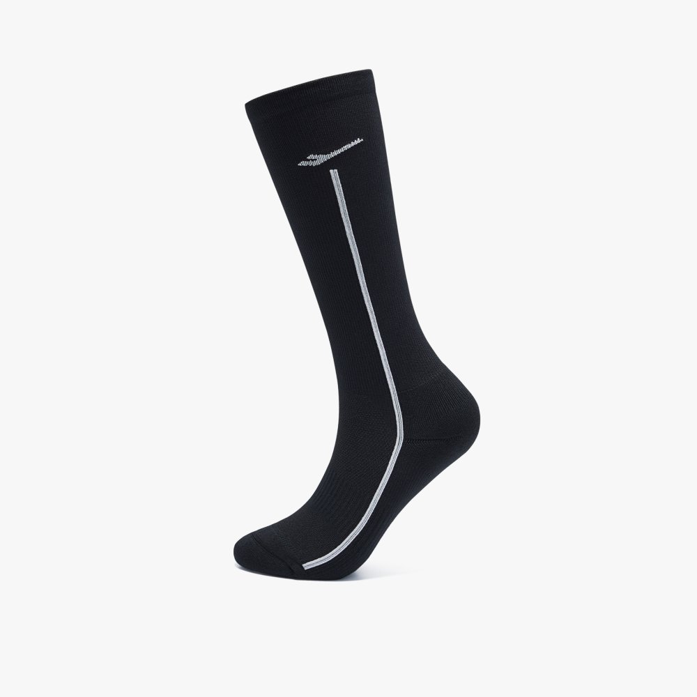 드라이쿨 원사를 적용해 흡습속건 기능을 갖춘 여성 컴프레션 러닝 니삭스로, 파일 쿠션과 메쉬 구조, 3D 입체 설계로 안정적인 착용감과 통기성을 높인 아이템입니다.